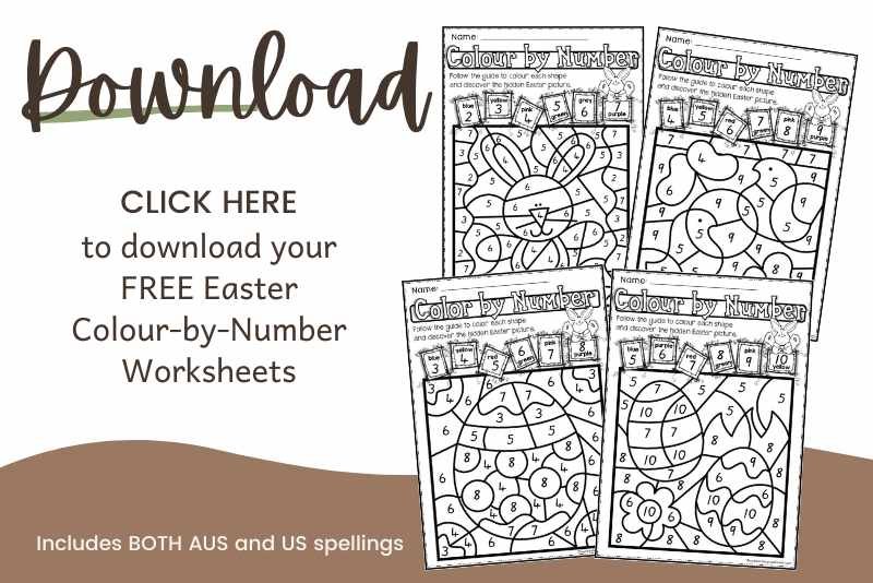 And don’t forget to download your free worksheets! Get your Easter Colour by Number worksheet here!