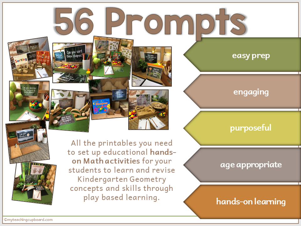 These 56 Geometry provocation prompts teach ALL the Geometry content descriptions for Kindergarten ACARA Version 9 Foundation Stage.